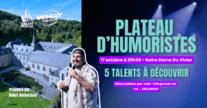 Rejoins-nous à la découverte de la nouvelle génération de l’humour près de Namur, dans une magnifique abbaye cistercienne chargée d’histoire.